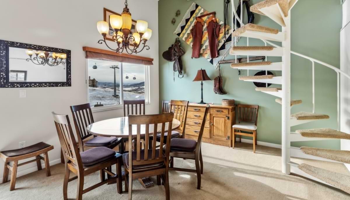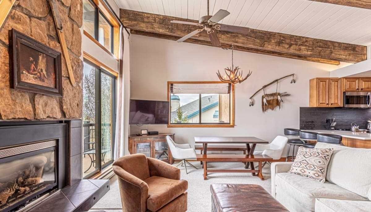 Just steps from the Right-O-Way trail, this top-floor condo sets you up for days filled with skiing, soaking, and mountain views. The two-level layout gives everyone room to spread out, and the vaulted ceilings keep the whole space airy and bright. It has that classic Steamboat charm, paired with the comforts you want after a big day outside.