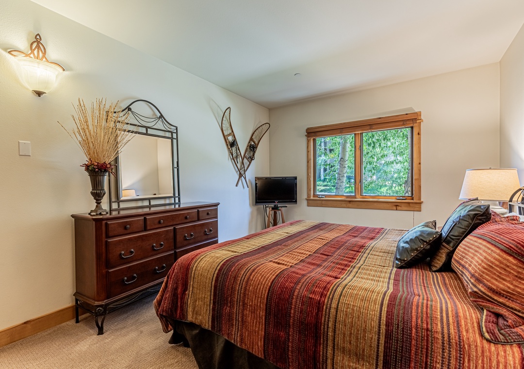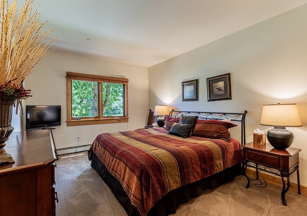 Primary Bedroom: King bed, en-suite bath, flat-screen TV