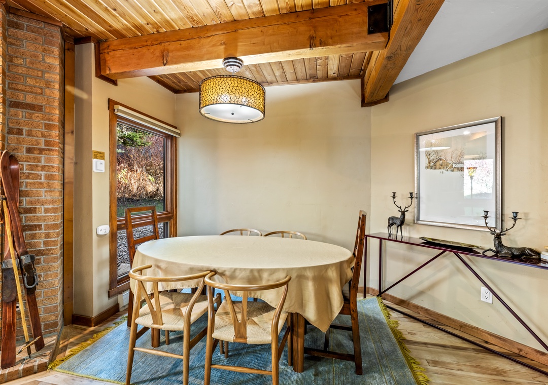 • Gather round the table with seating for six and additional seating for three at the breakfast bar
