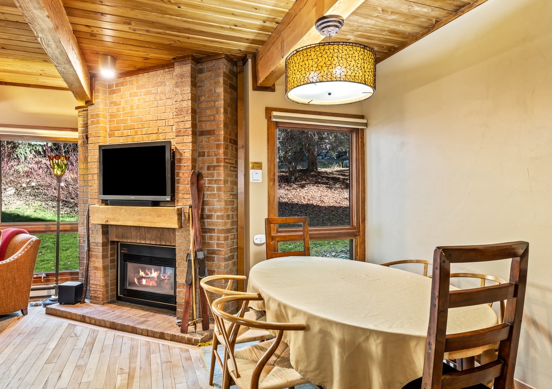 • Cozy up around the easy-to-use fireplace or relax and watch your home team game in the living area