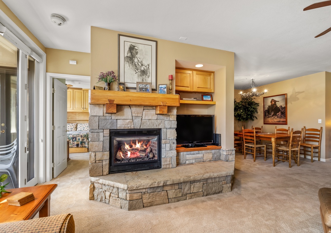 • Unwind together after the day’s adventure on the comfortable couch centered around the easy-to-use fireplace and large Smart TV