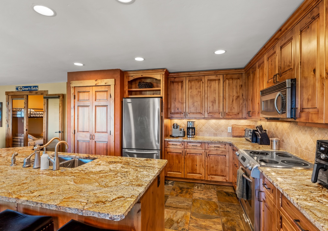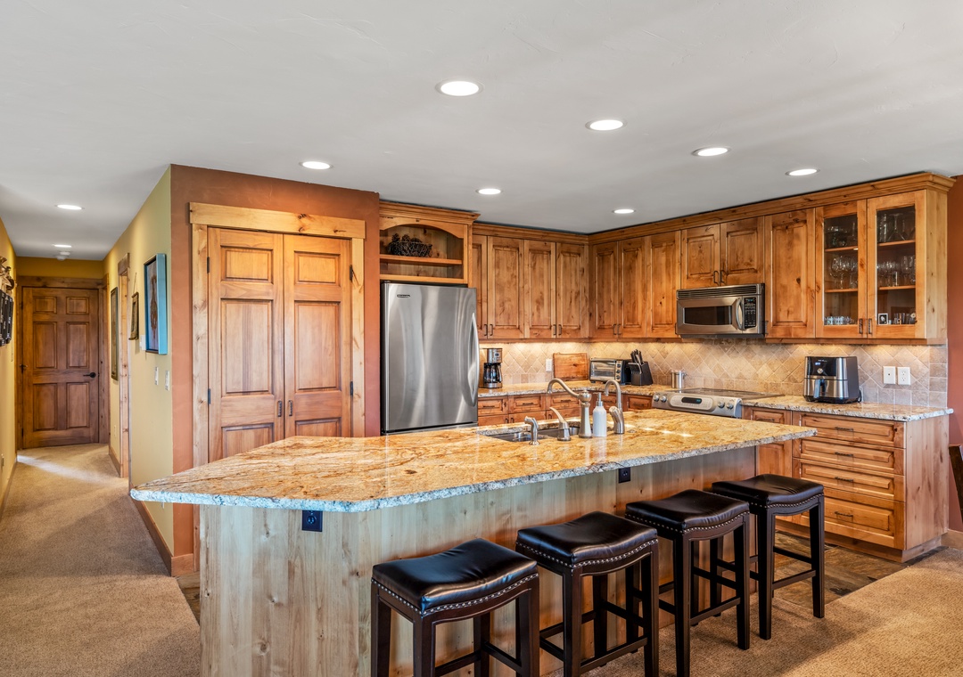 • Fully Equipped Kitchen: Stainless steel appliances, seating for 8 at the dining table + 4 bar stools for casual meals.