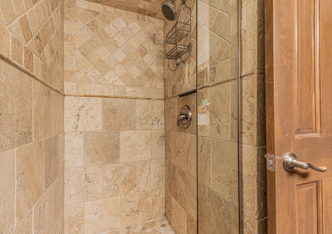 Primary Bedroom (Main Floor): King Bed + Shared Bathroom with Walk-In Shower