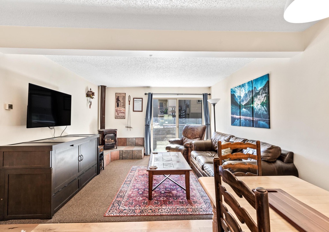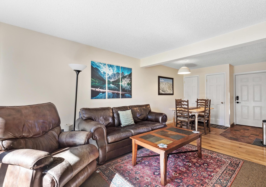 Relax in the warm and welcoming living space after a day of skiing, hiking, or biking. Stream your favorite shows on one of the Smart TVs (in both bedrooms and the living area), or gather for a game night and meals around the full kitchen and dining area. Need an extra bed? A Murphy bed folds down in the living room for additional sleeping space without sacrificing comfort.