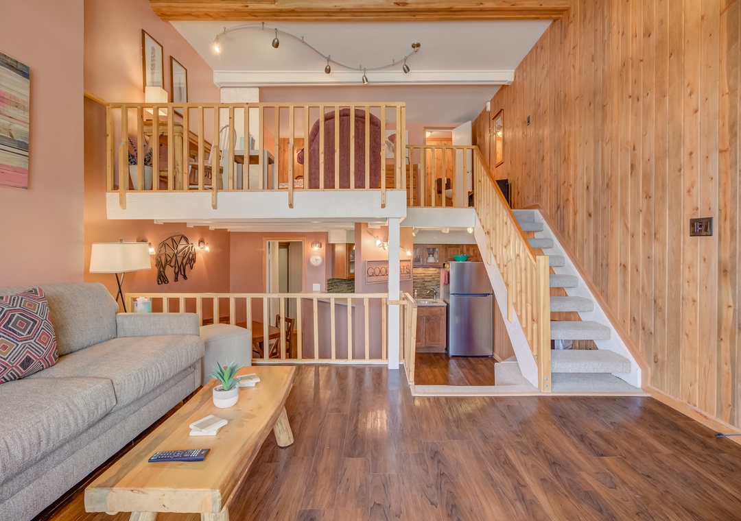 This is a cute little one bedroom-in-loft is really for a family or close friends. The loft bedroom is big, fold out couch good for kids. Everyone basically has to go to bed and get up at the same time. Huge plus is having 2 bathrooms. Kitchen and eating area small but fully stocked. Our first night was a little rough with no blankets for the fold out and a rattling heating unit, but the management company addressed everything immediately in the morning. Overall it was a great value. We will stay here again for easy skiing!- Posted: 3/26/2022