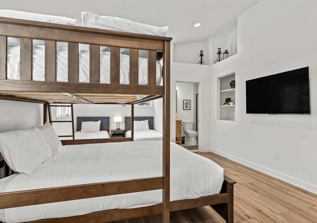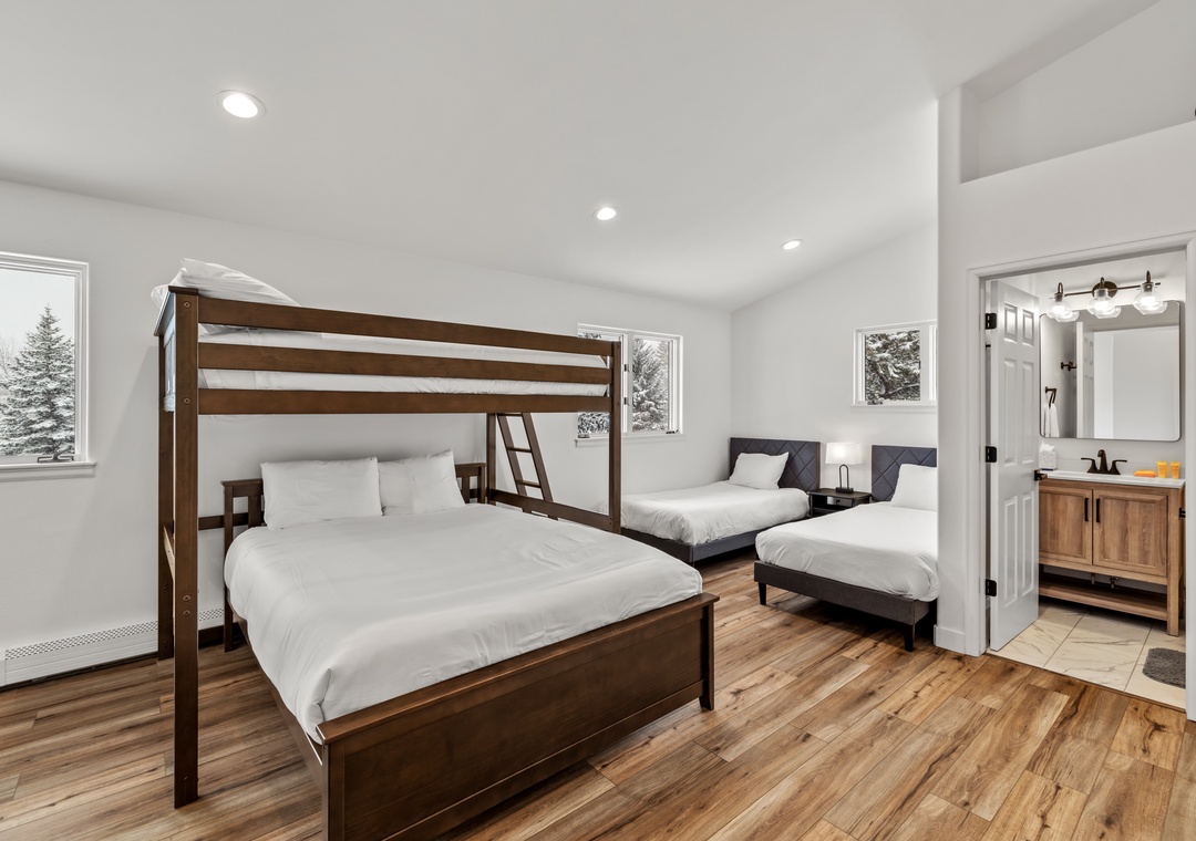 Bedroom 4 (Upstairs): Full/Queen Bunk + 2 Twin Beds + Ensuite Bath