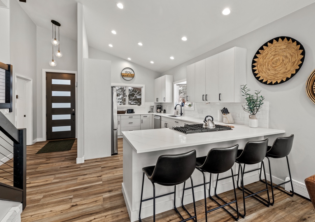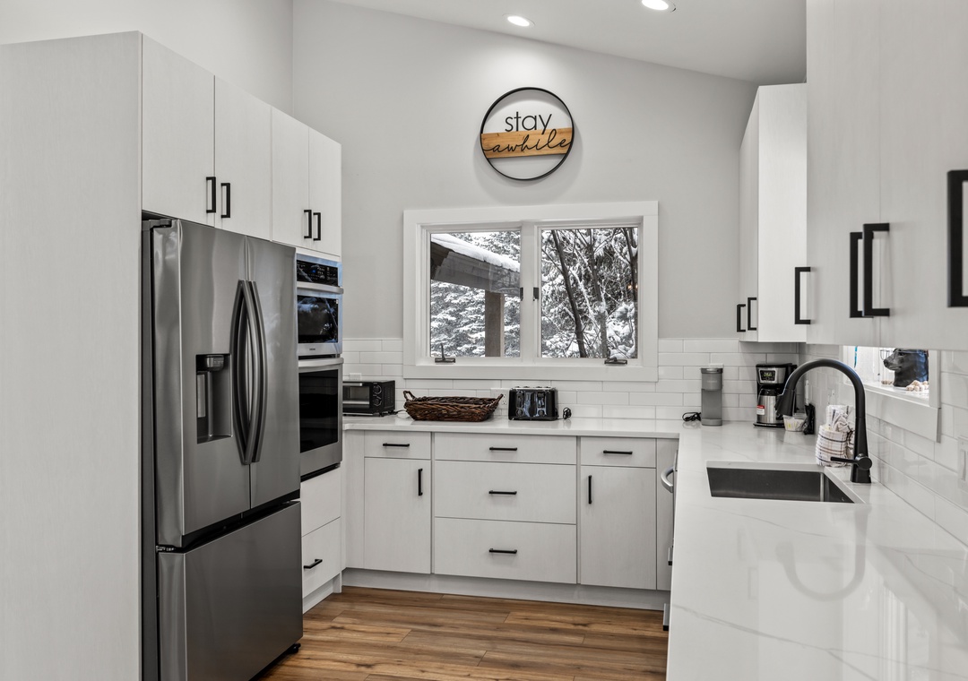 - Gourmet Kitchen – Quartz countertops, stainless steel appliances, and fully stocked for group meals