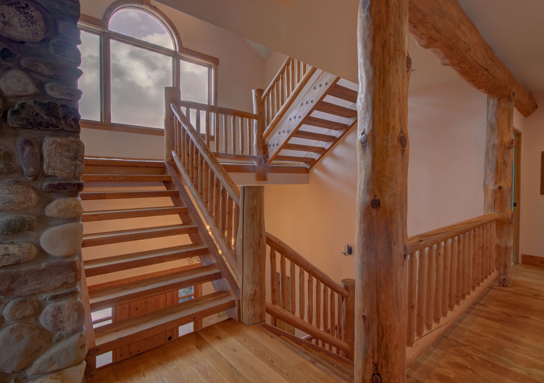 - Cathedral Ceilings + Stone Fireplace – Cozy up in the heart of the home surrounded by warm log cabin vibes