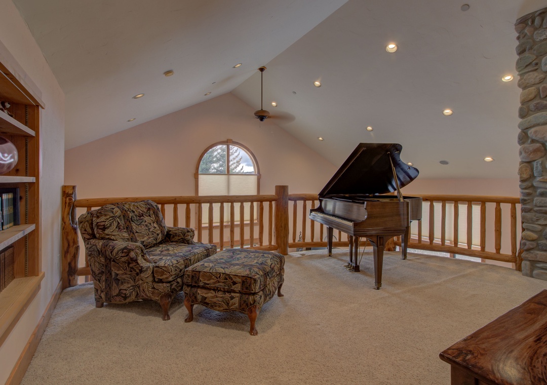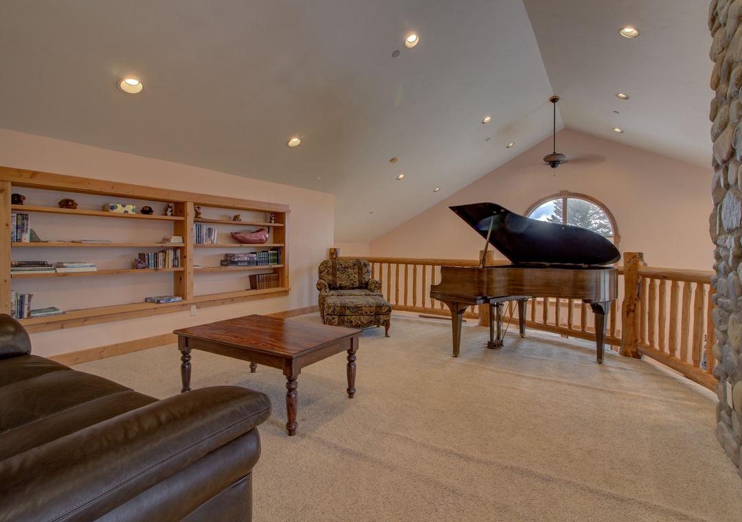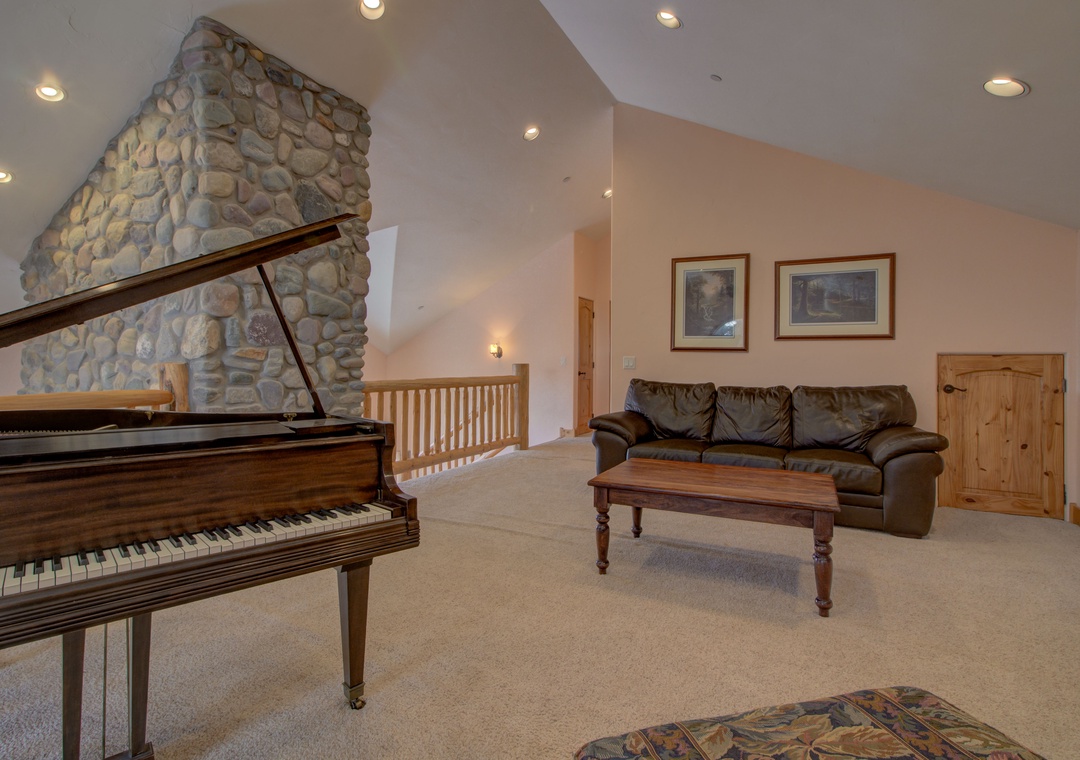 Loft: Lounge seating + Games + Piano (not a sleeping area)