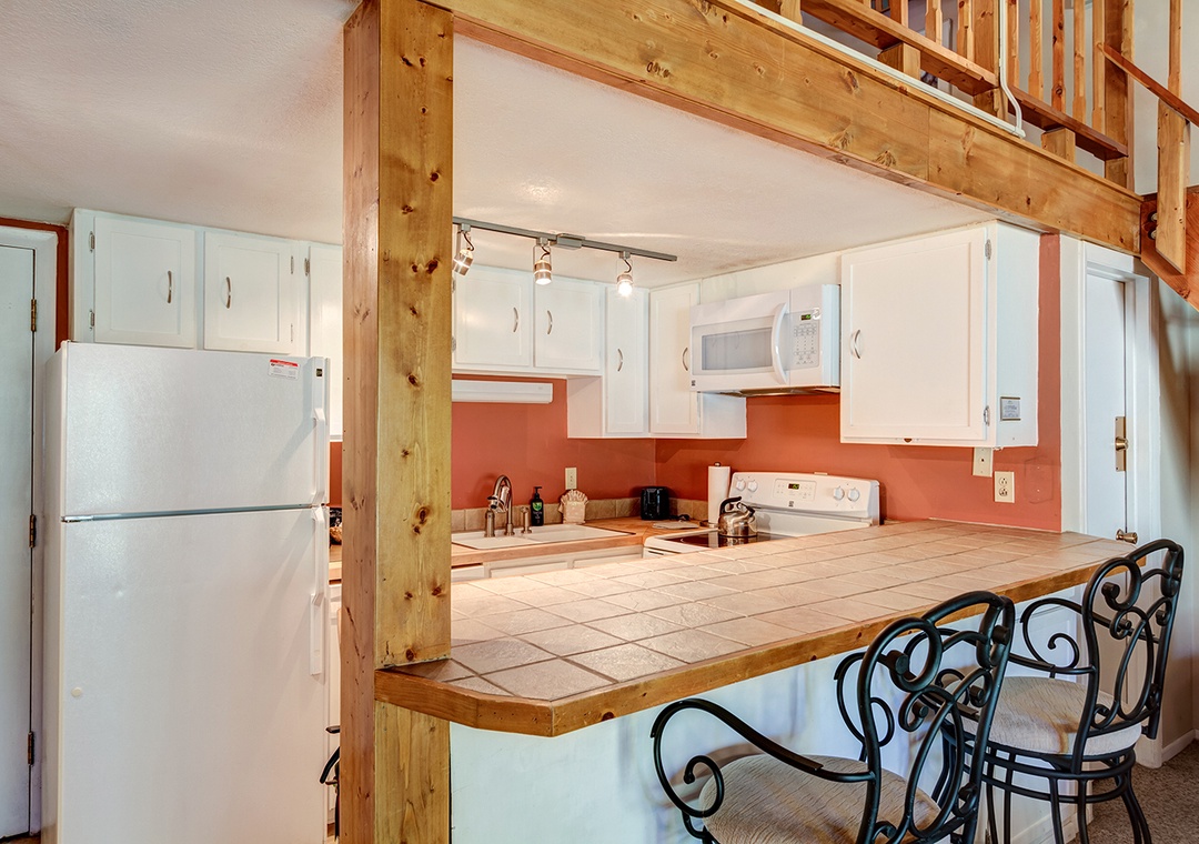 - Vaulted Ceilings & Mountain Charm: Exposed beams, wood counters, and mountain views create a cozy alpine ambiance