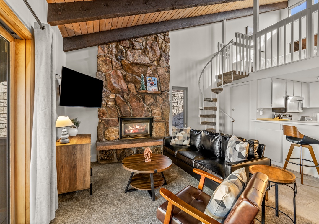 • Vaulted Ceilings & Gas Fireplace – Relax in an inviting main-level living space with tall ceilings and a cozy fireplace (available November–May)