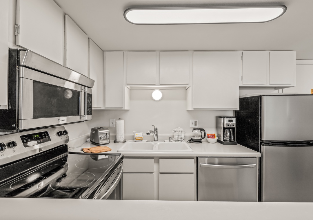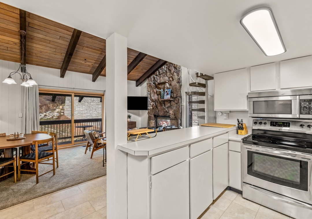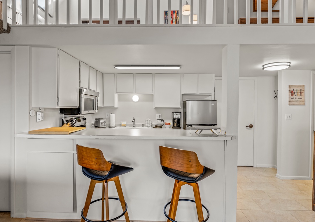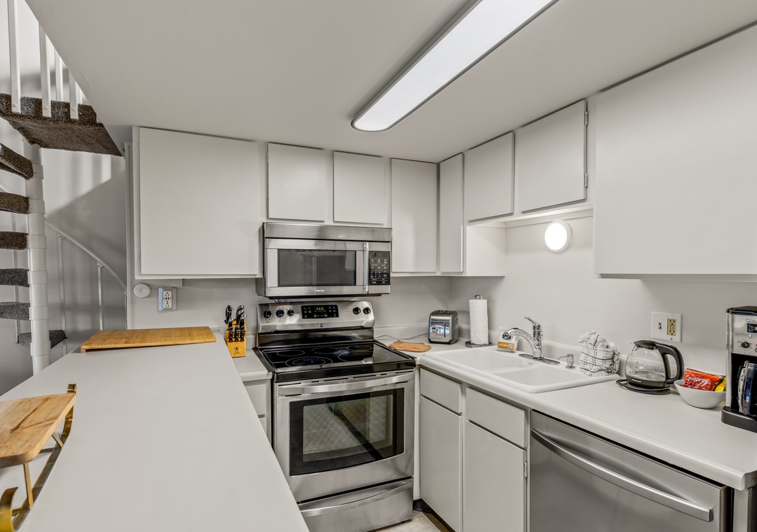 • Fully Stocked Kitchen – Featuring stainless steel appliances, ample cookware, and bar seating