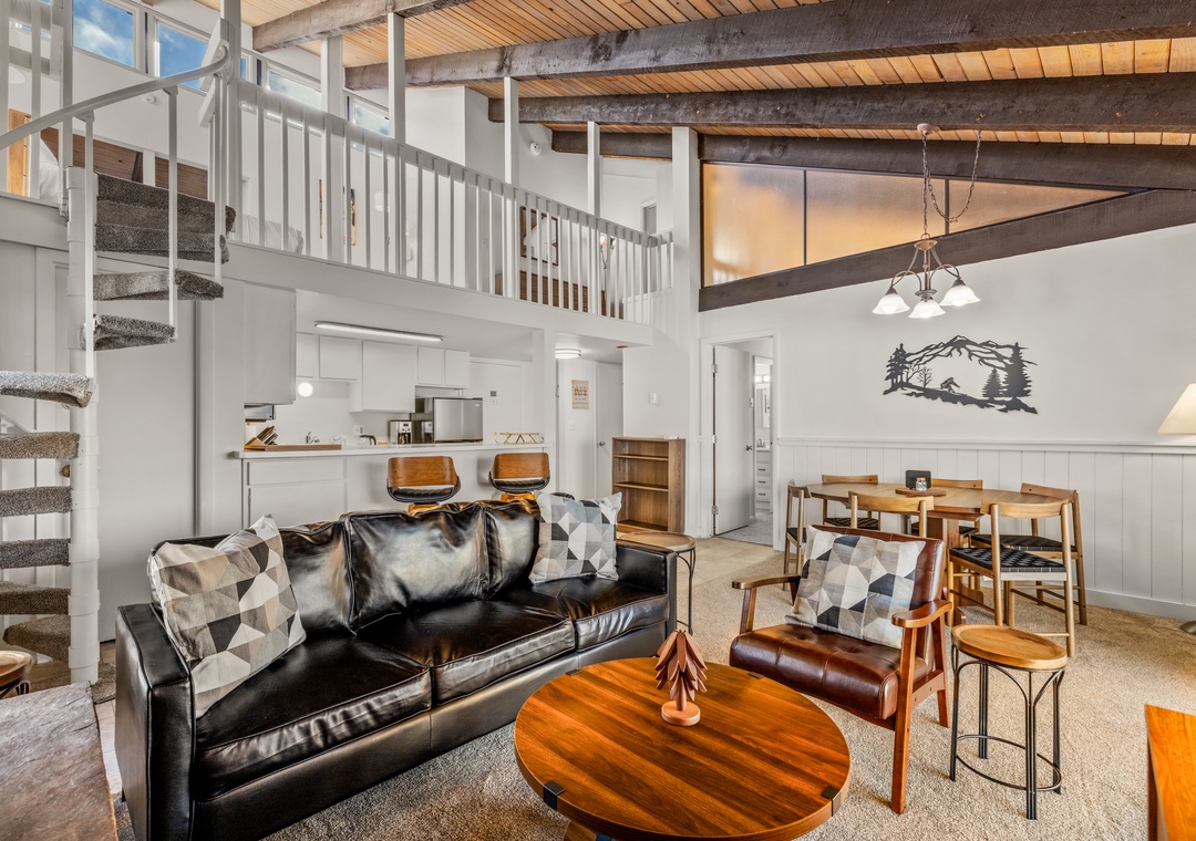 This partially remodeled 2-bedroom, 2-bathroom ski-in/walk-out condo combines modern comfort with unbeatable slope access. Nestled just off the Right-O-Way ski run, this mountain retreat features new paint, flooring, carpet, and all-new furnishings. Enjoy vaulted ceilings, a cozy gas fireplace, and a loft-style ensuite bedroom designed to elevate your mountain stay. Step outside and you're moments from world-class skiing, scenic biking, and the rejuvenating outdoor hot tub. With a private ski locker, grilling area, and a fully stocked kitchen, this condo is ideal for both adventure and relaxation.