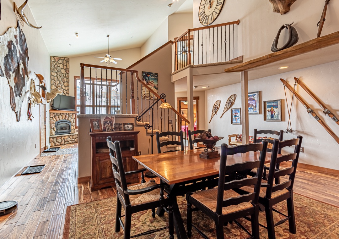 A/C: NO – like most homes in Steamboat, ceiling fans help maintain comfort in summer