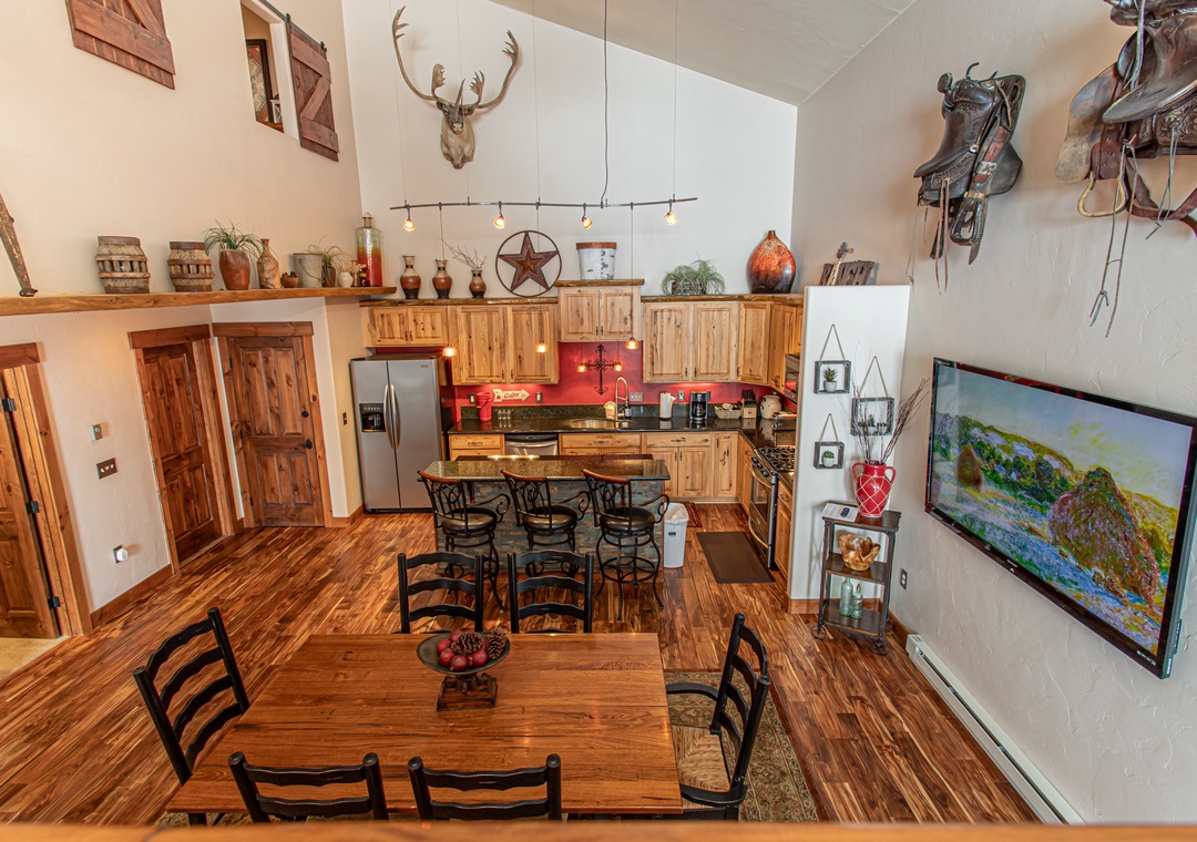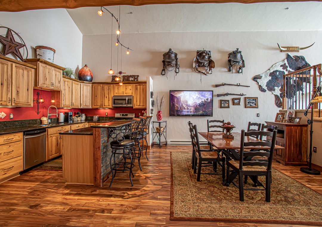 Great condo, clean and stocked with everything you need. Minutes walk to the bus station, on demand shuttle as well, and plenty of parking. They went all in on the cowboy/Western theme!