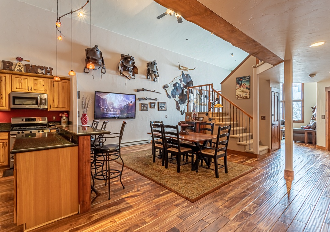 - Formal Dining – Seats 6 comfortably, with an additional wall-mounted TV for game nights or movie marathons