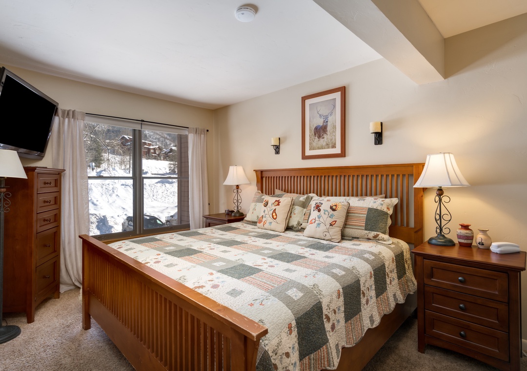 Upstairs Master Bedroom: King bed, vaulted ceilings, en suite bath