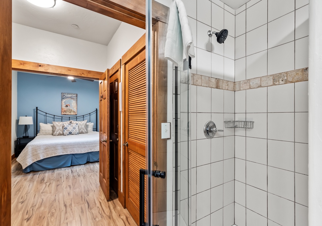 Primary Bedroom: King Bed, en suite bathroom with tub/shower combo