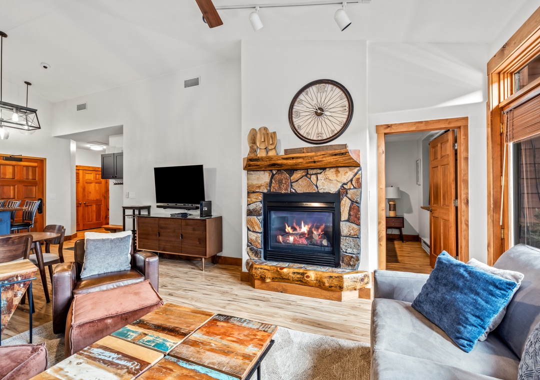 - Stylish and Cozy Interior – Vaulted ceilings, mountain-modern décor, and a gas fireplace for après-ski evenings