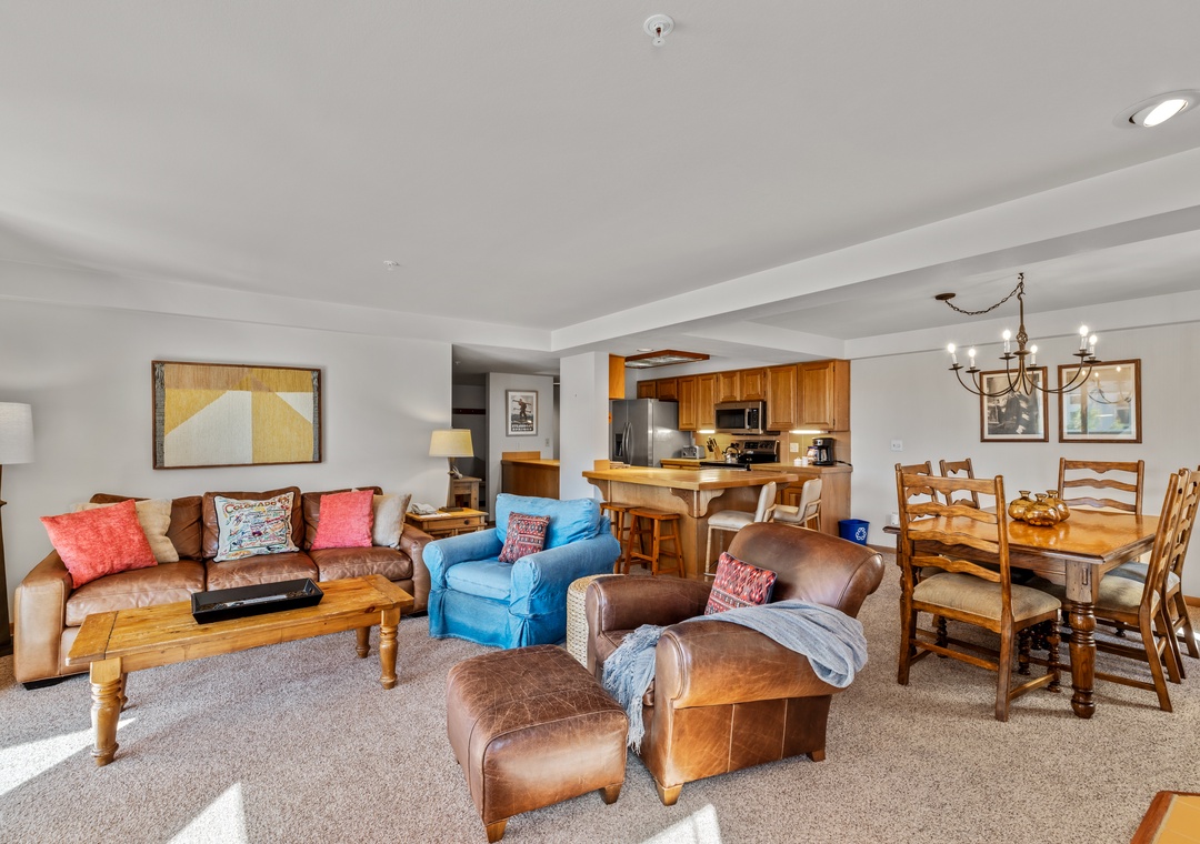 - Warm & Inviting Living Space – Relax after your ski day by the gas fireplace with cozy furnishings and an open layout perfect for group gatherings.