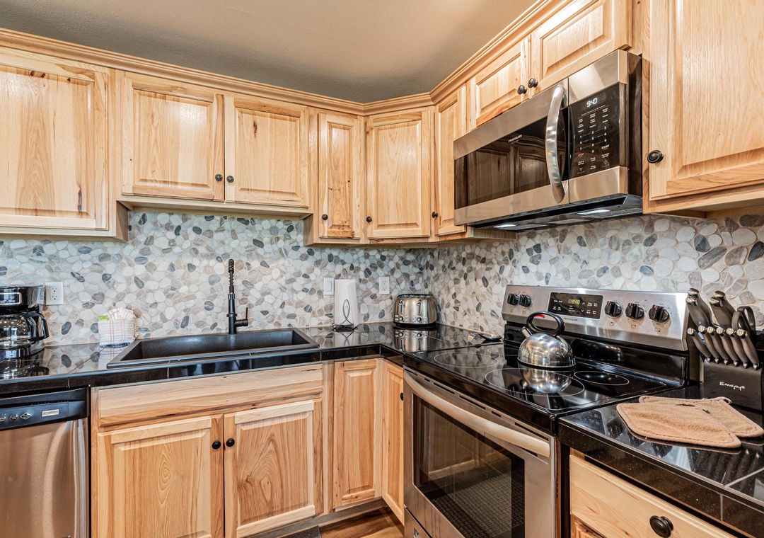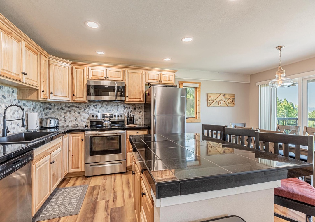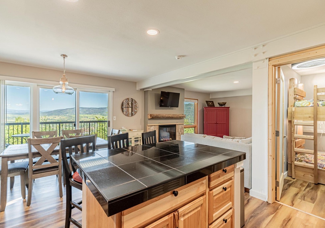 - Warm & Welcoming Living Area – Lounge together around the fireplace and flat-screen TV after a day on the slopes