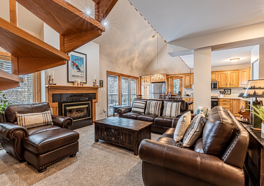 - Spacious Top-Floor Layout – Vaulted ceilings, open concept design, and a bright, airy living space with a gas fireplace