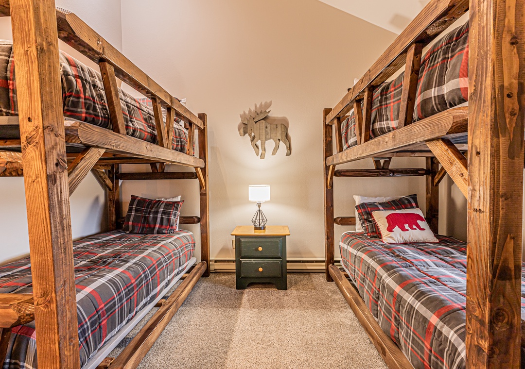 Bedroom 2 (Main Floor): 2 Twin-over-Twin Bunk Beds (Sleeps 4)