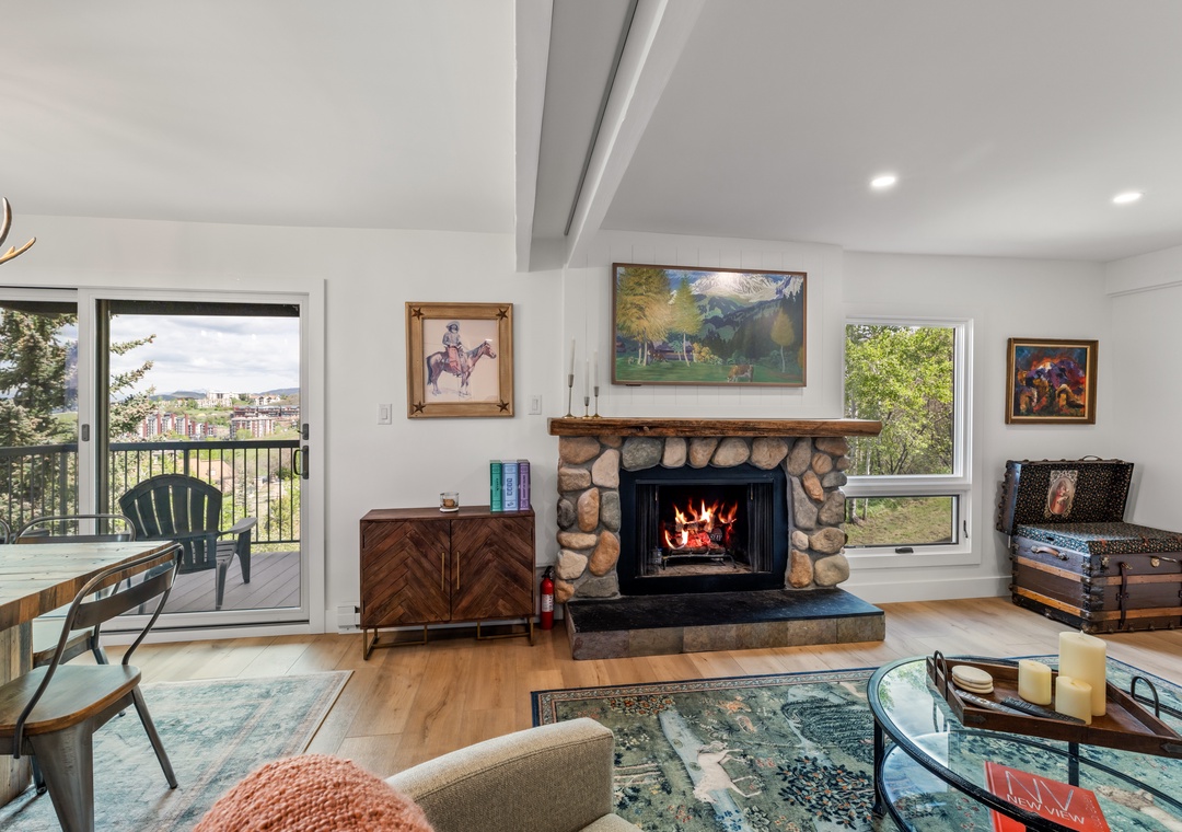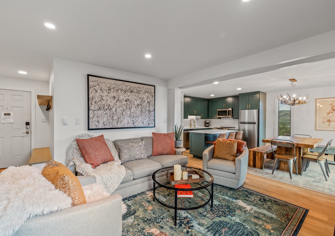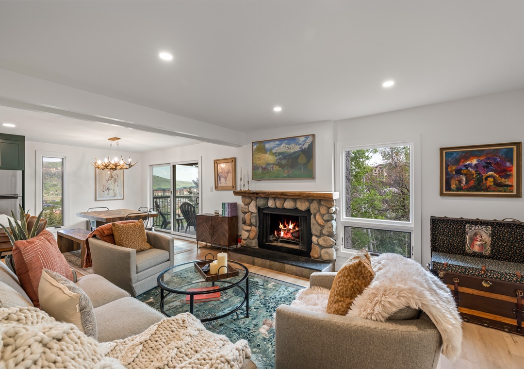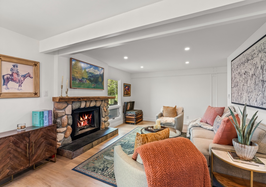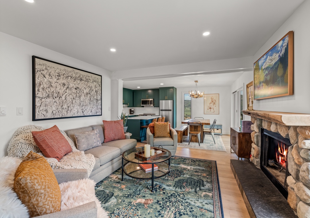 • Warm Mountain Vibes – Gather around the sleek gas fireplace and relax in thoughtfully curated furnishings designed for alpine coziness