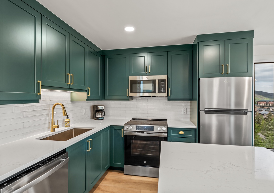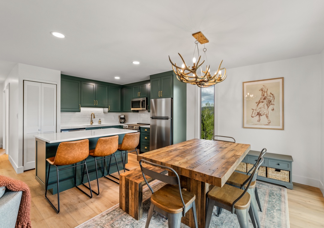 • Modern Kitchen – Cook like a pro in the updated kitchen with stainless appliances, upgraded countertops, and all the essentials for après-ski meals